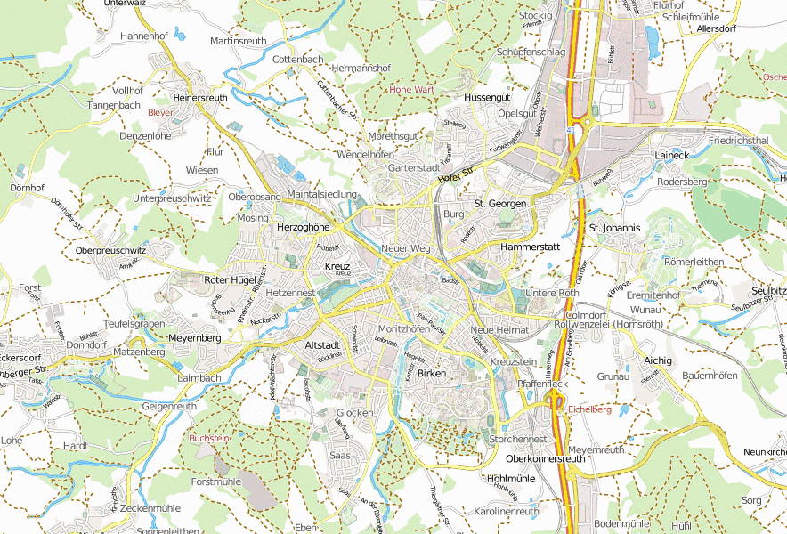In der näheren Umgebung finden Sie beliebte Sehenswürdigkeiten wie etwa Spitalkirche , Präsidialbau der Regierung von Oberfranken oder Stadtkirche . Interessant sind auch folgende Landkarten: Markgräfliches Opernhaus, Stadtkirche , Spitalkirche und Eremitage